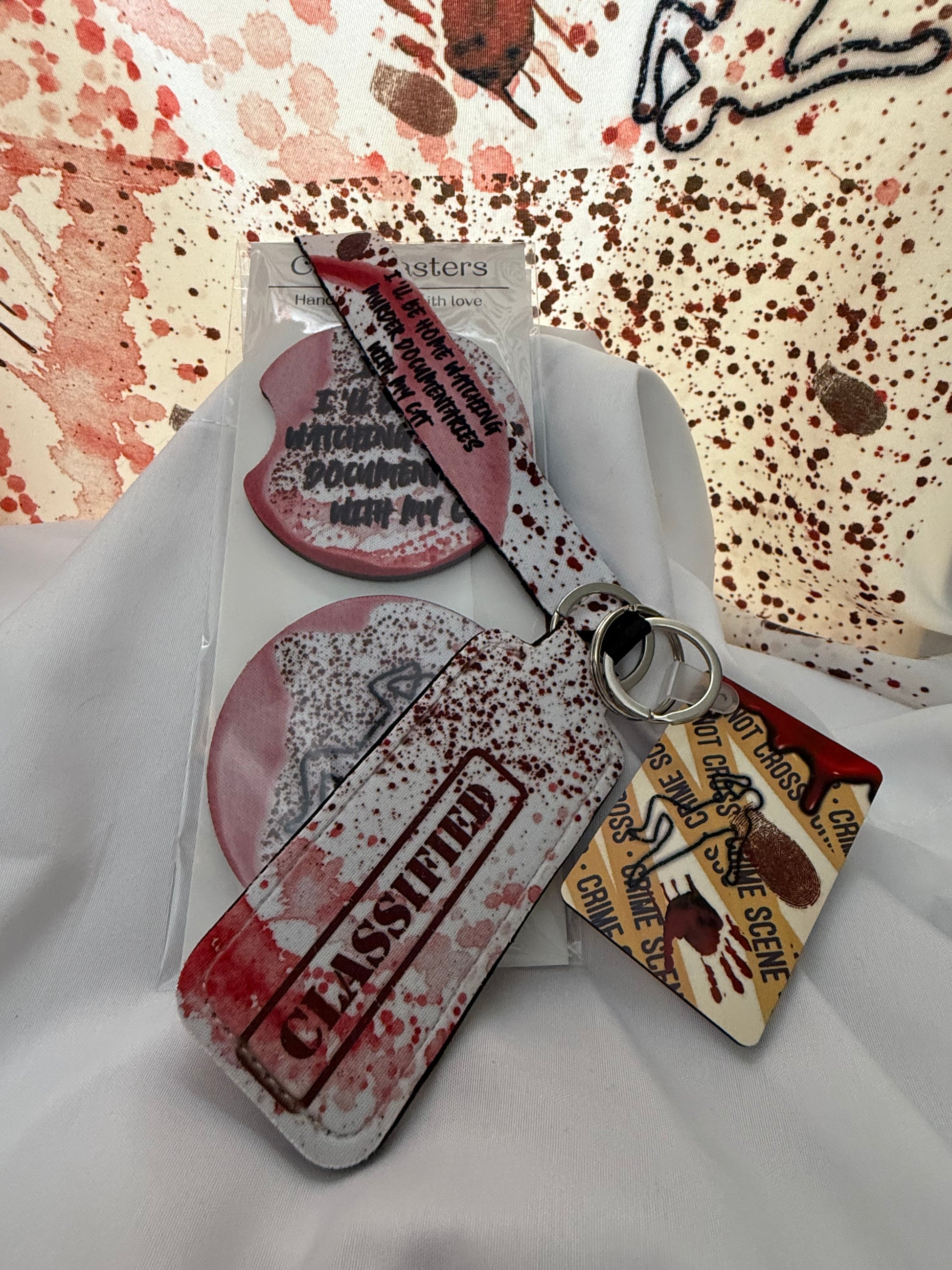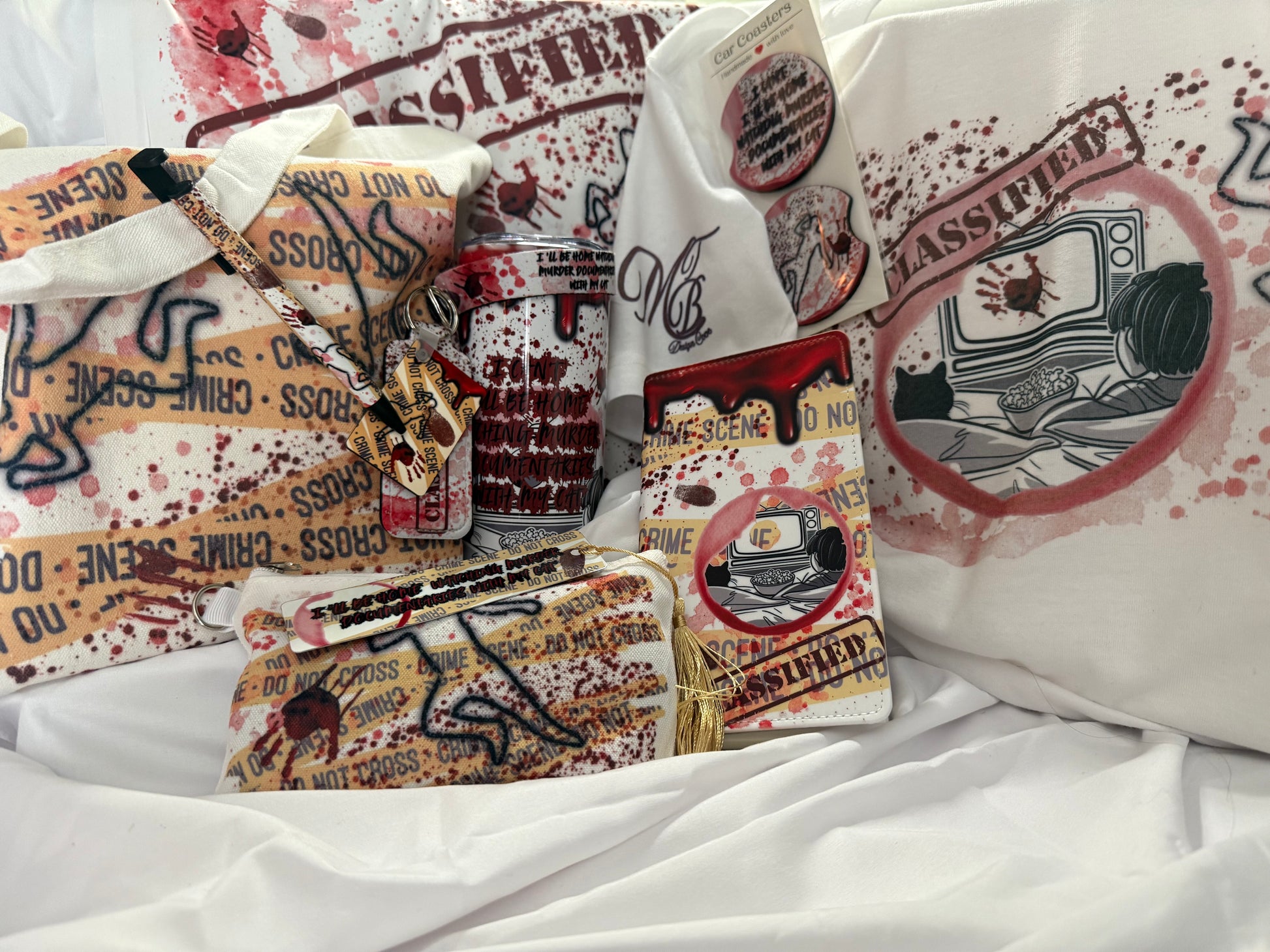 This bundle layers cozy vibes with a slightly sinister charm, pairing neutrals, bold lettering, and just a whisper of mischief. Whether you're sipping something hot while solving cold cases or just embracing your antisocial era in style, Criminally Cozy keeps things comfort-first and questionably cute.