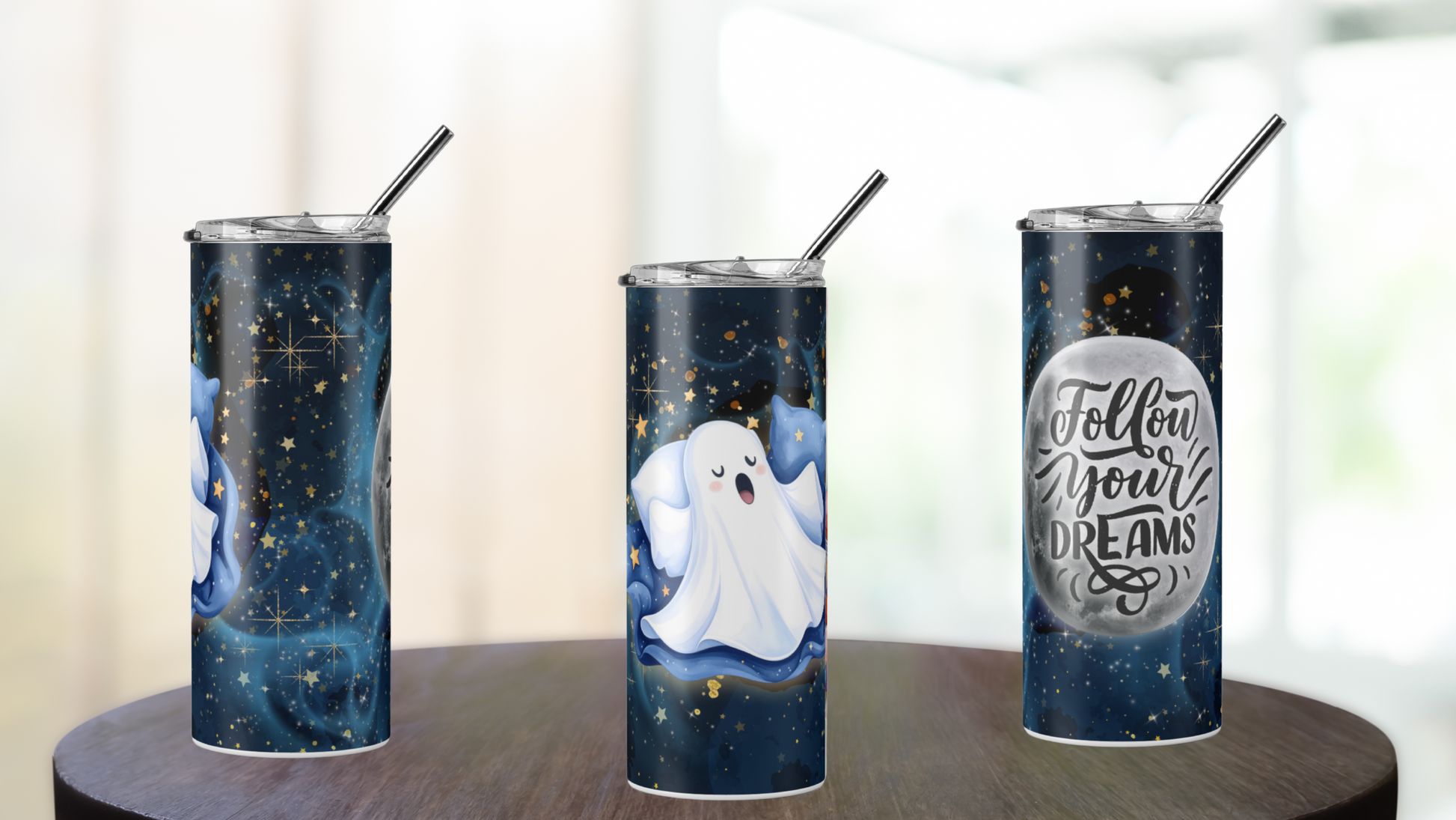 Meet Drift, the Dream Hauntling. Wrapped in starlight and soft blankets, this sleepy little ghost is here to remind you that rest is just as magical as ambition. Let Drift watch over your nights and cozy cups as you follow your dreams.