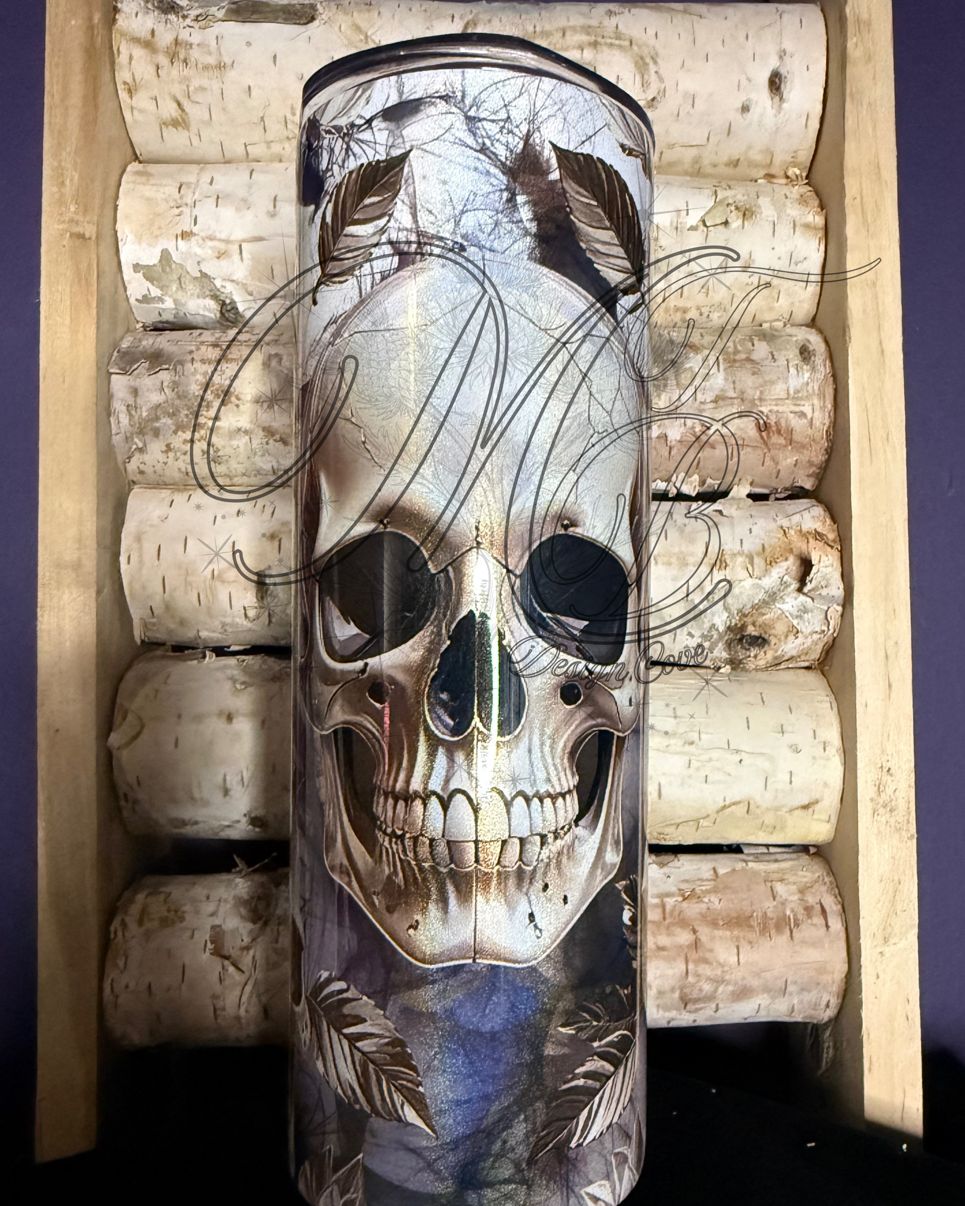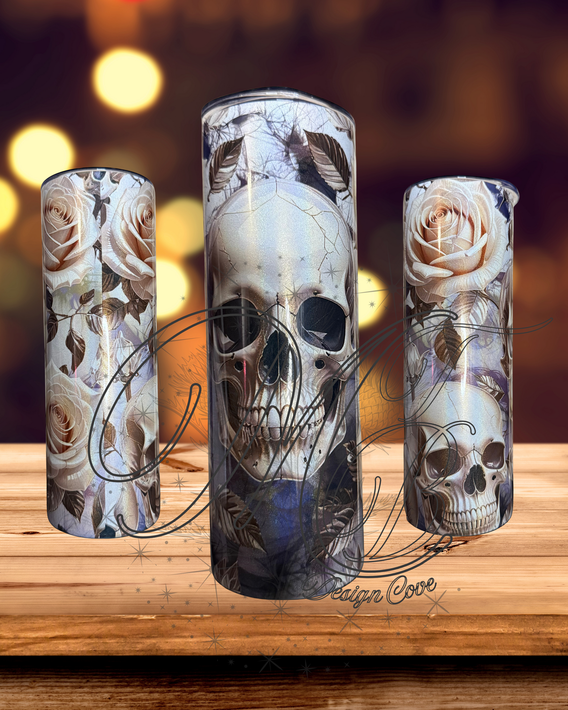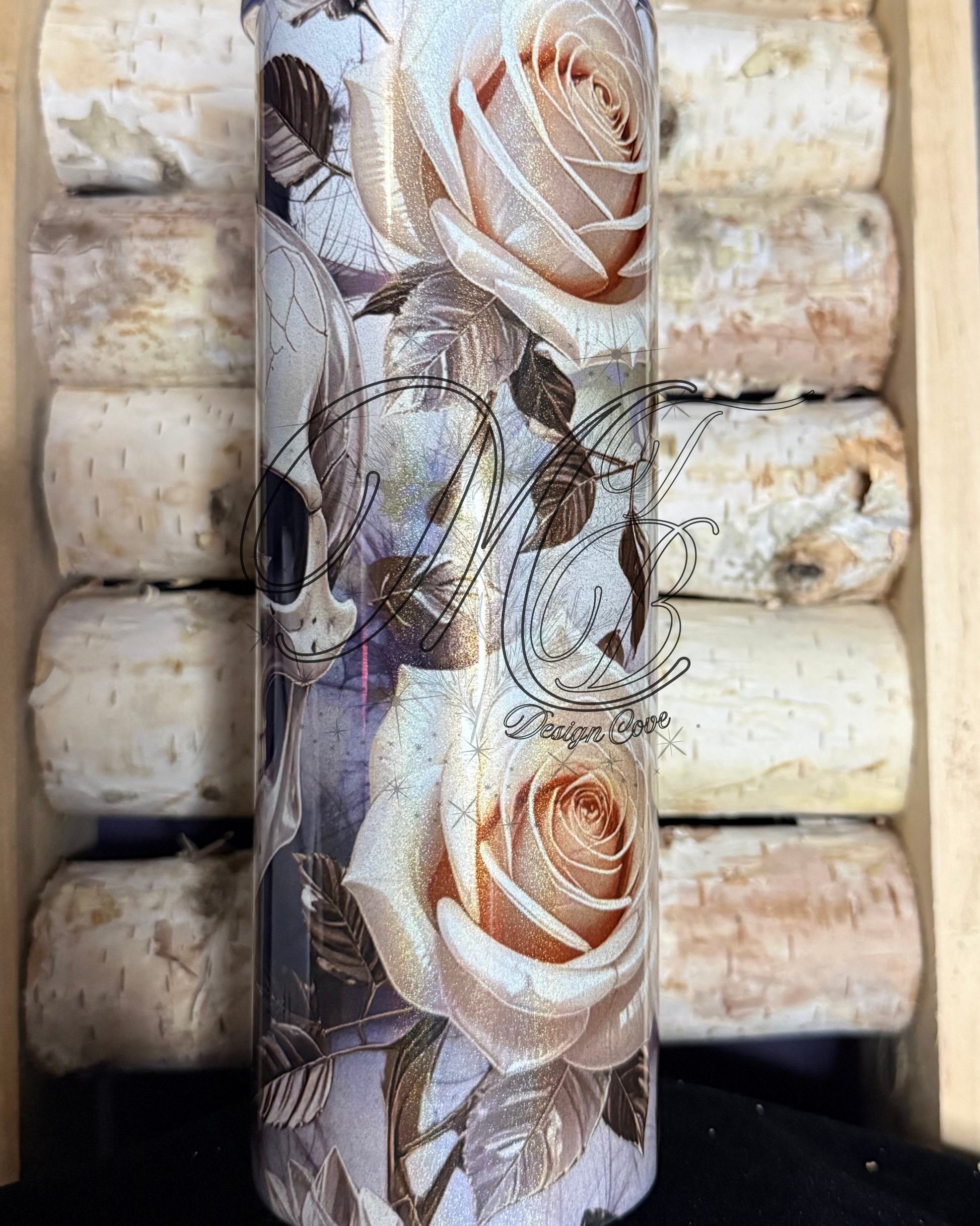 Created specifically for holographic tumblers, Eternal Bloom can’t exist anywhere else—its shimmer, depth, and shifting glow are part of the magic. Skulls and roses entwine across the surface, catching light in ways no flat design ever could.