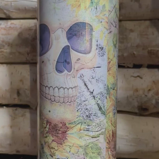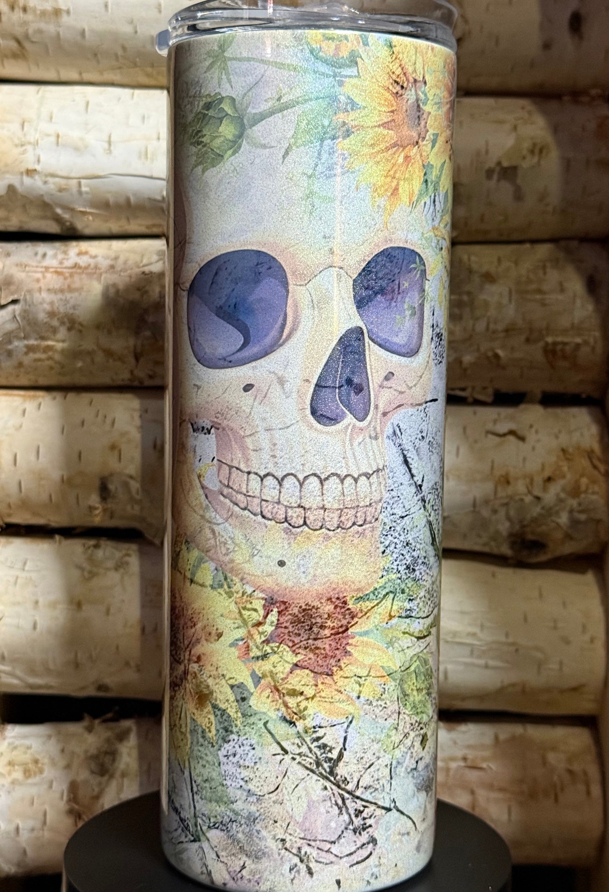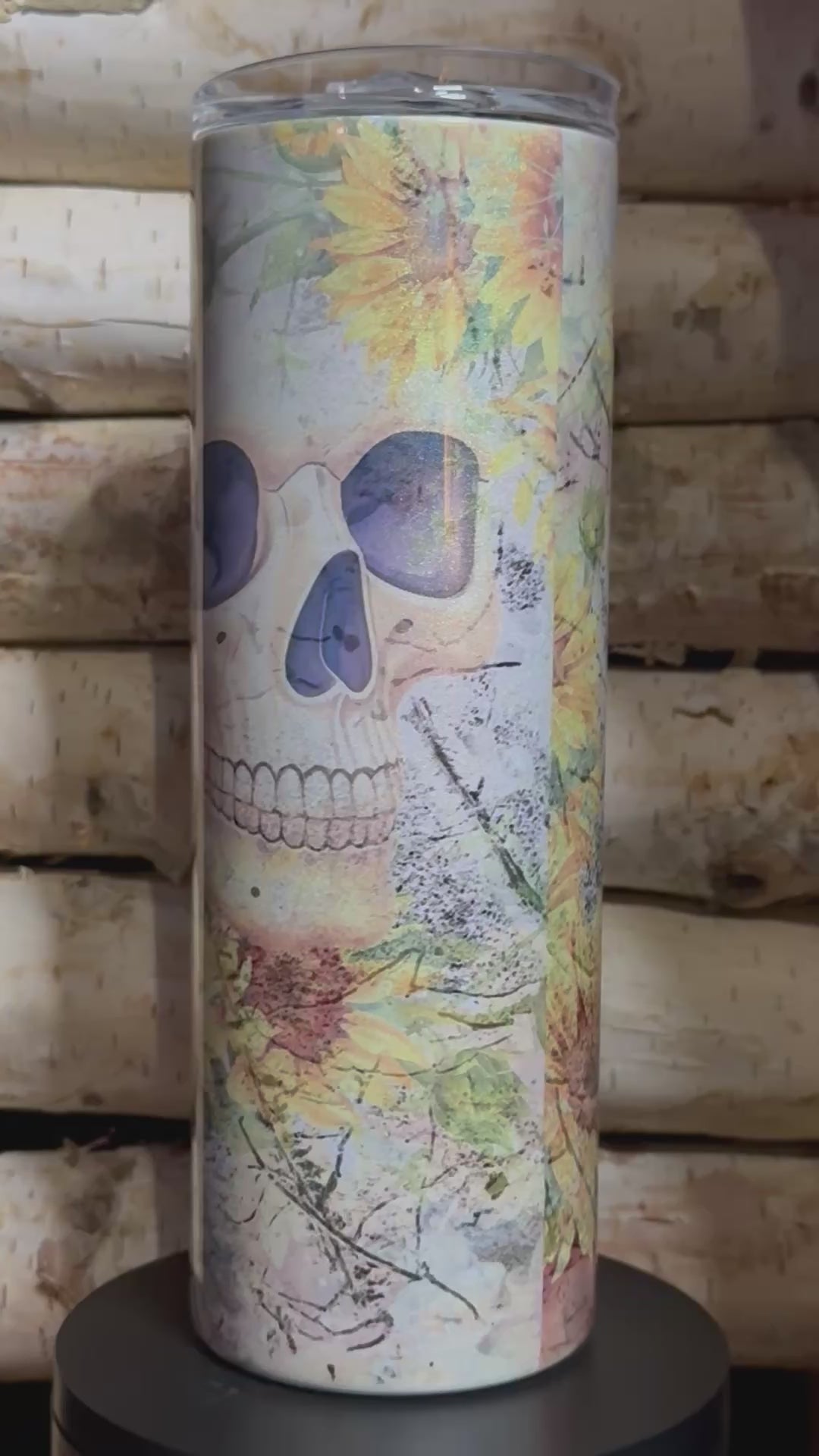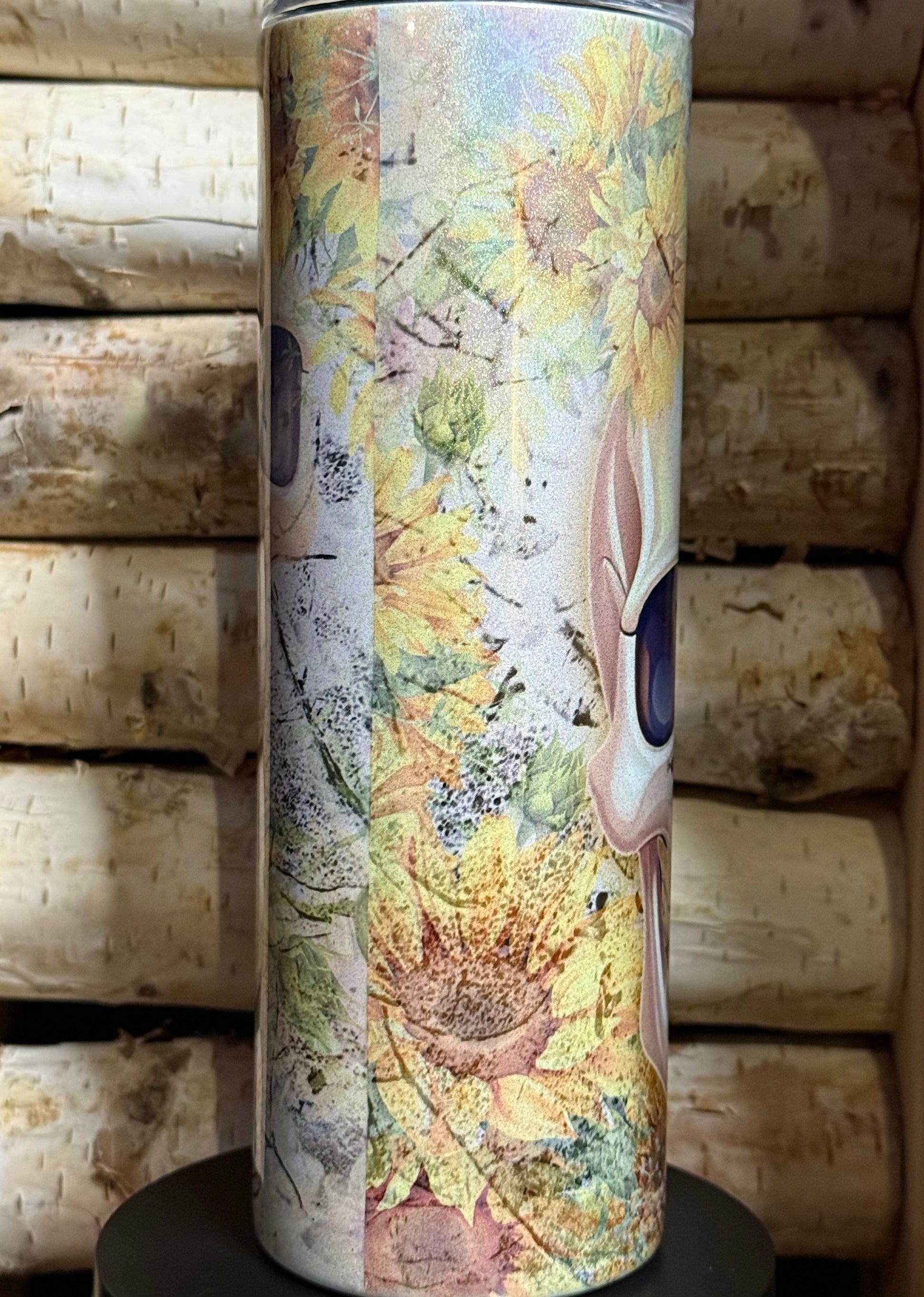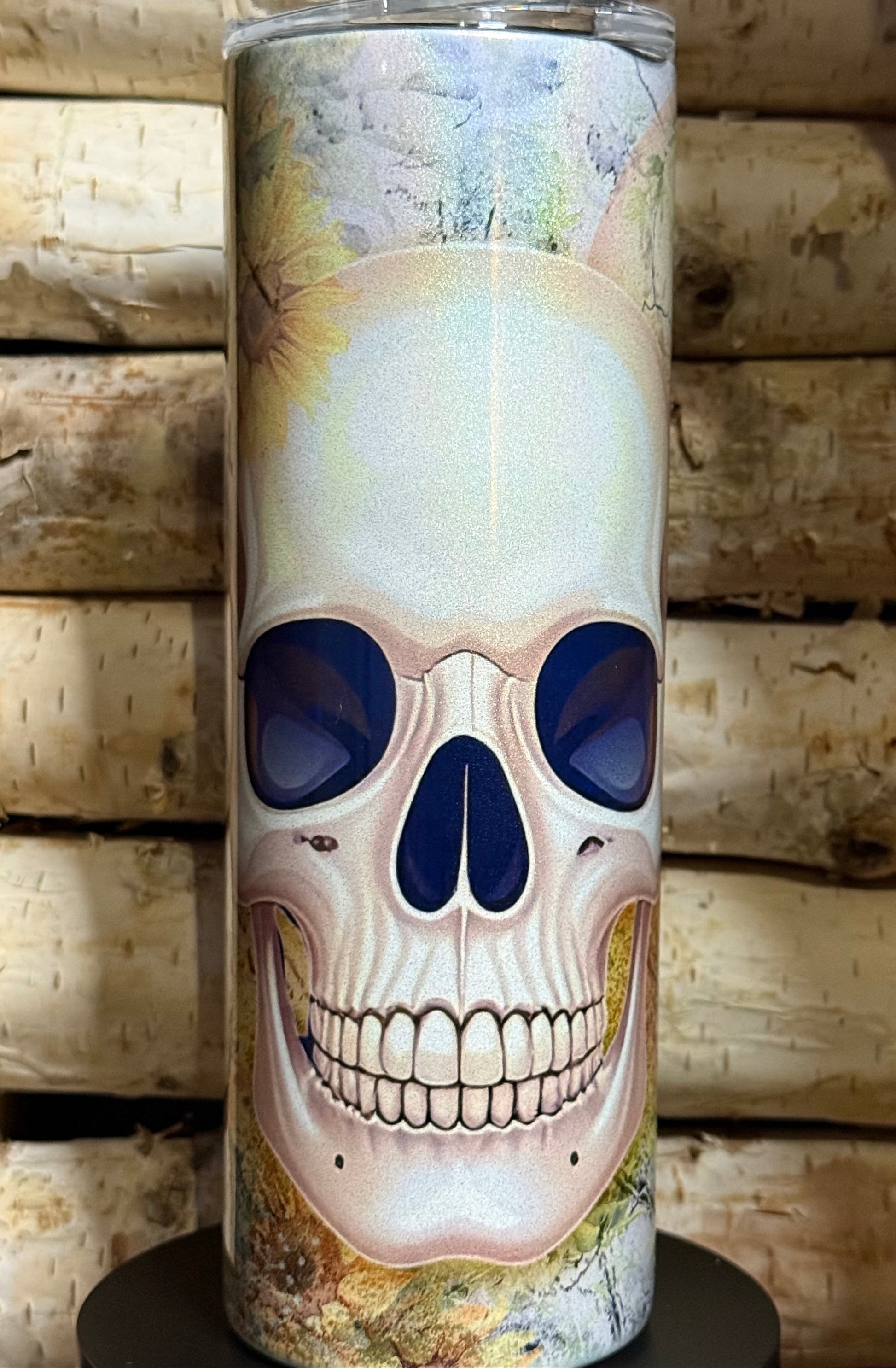 The Eternal Harvest tumbler captures that quiet truth: skull and sunflower intertwined, shimmering in shifting holographic light. It’s a reminder that beauty endures even through decay, that warmth still lingers long after the season’s turn. Tilt it beneath sunlight or lamplight and the design comes alive, glinting with the same stubborn glow that refuses to dim.