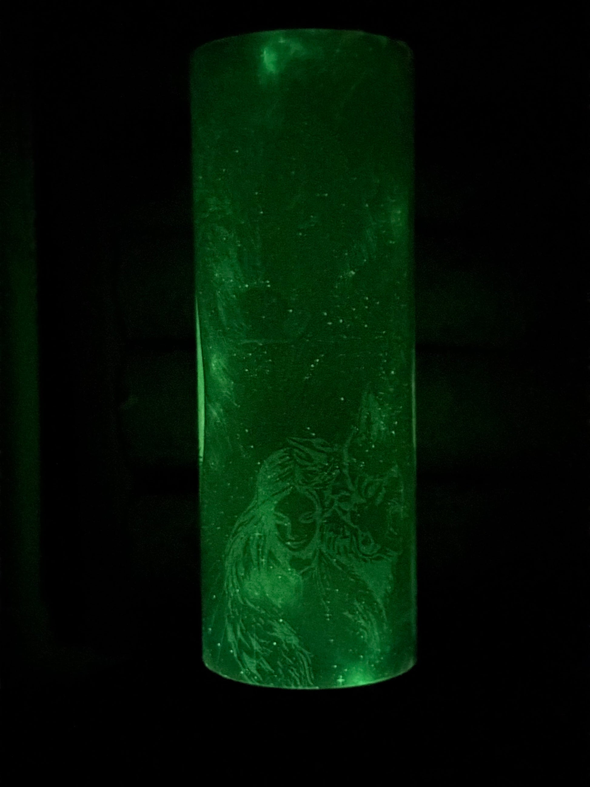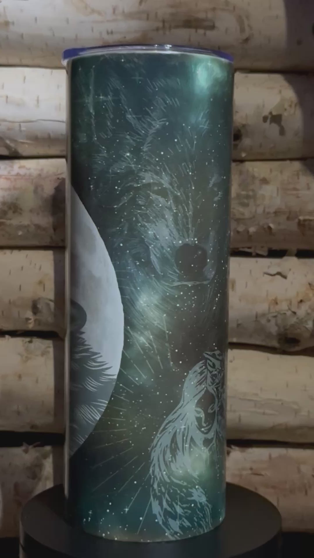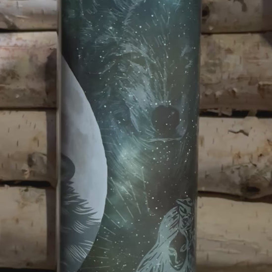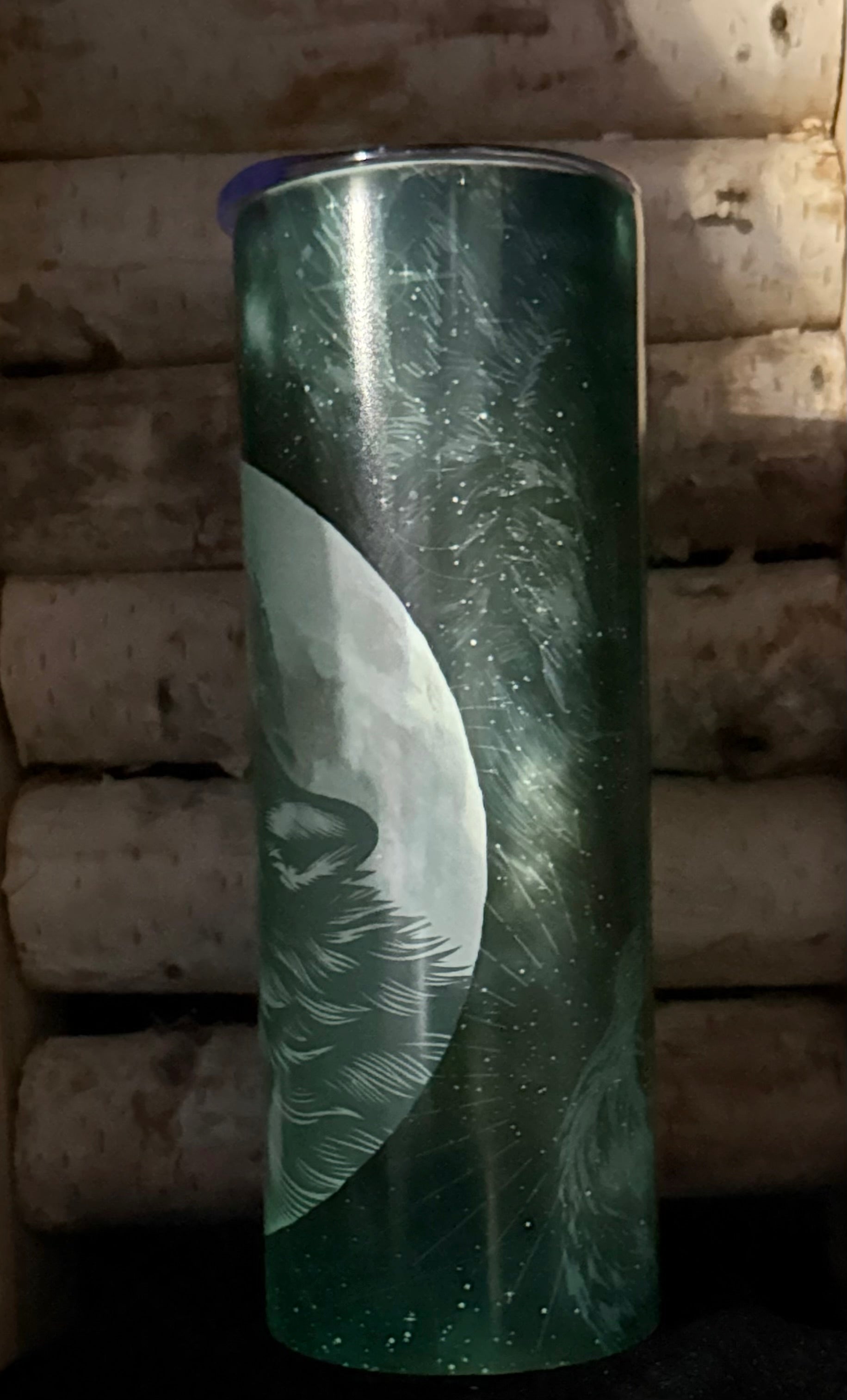 The Moonbound Sentinel tumbler captures that steadfast devotion found in both wild and heart alike. A lone wolf lifts its gaze to the glowing moon, illuminated by a soft, ethereal light when darkness falls. Whether it reminds you of protection, resilience, or the promise to never walk alone, this design was made to mean what you need it to.