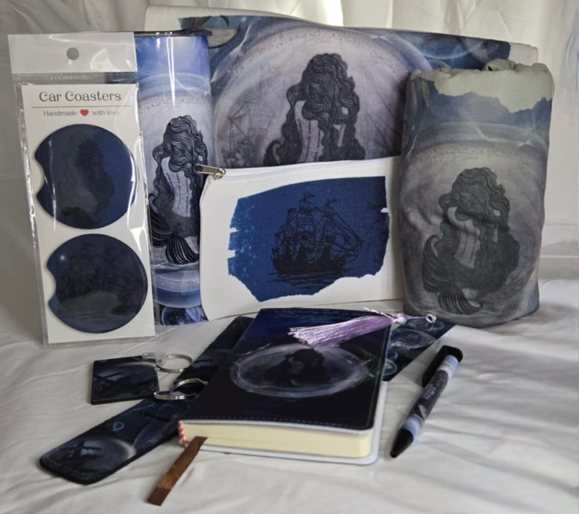 Drift into the hush of ocean winds and moonlit waves with Siren’s Rest, Set 6 in the limited-edition Coveborne Collection. Every item in this set is a tangible, handmade piece sublimation-printed with our custom-designed artwork.