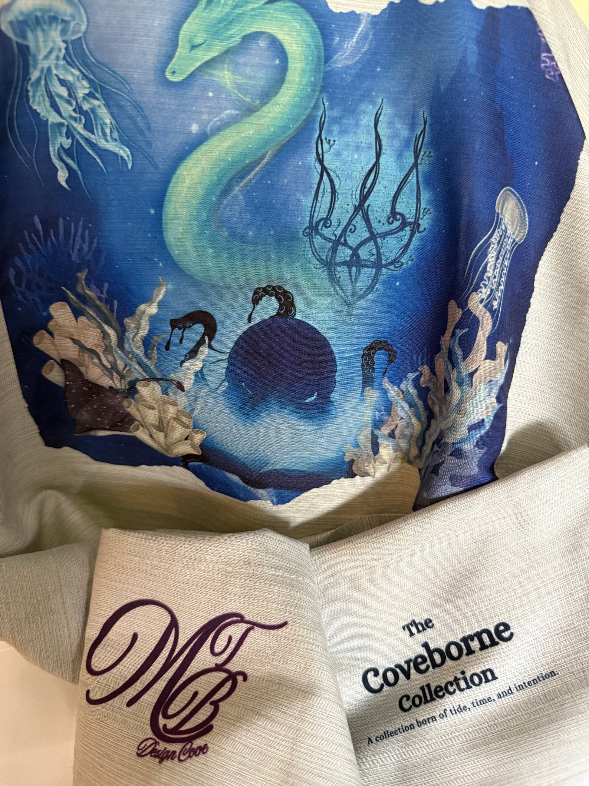 Words ride the waves in Tidescript, Set 7 in the limited-edition Coveborne Collection. Inked with mystery and drawn from the deep, this design speaks to those who find magic in margins, meaning in driftwood, and poetry in the tide.