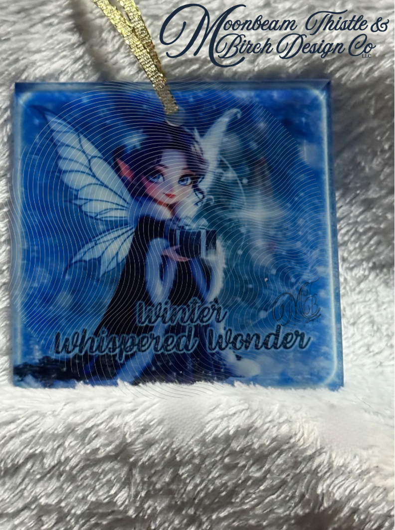 Pressed on tempered glass, this ornament showcases cool winter tones, shimmering highlights, and a serene winter spirit front and center. The translucent glow makes her shine whether she’s on a Christmas tree, displayed in a window, or adding a soothing winter touch to your favorite cozy corner.